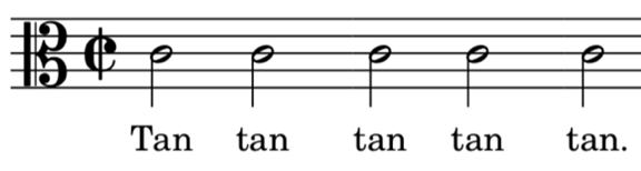 Music ex. The five strokes: as notated in Arbeau 1596, fol. 8r